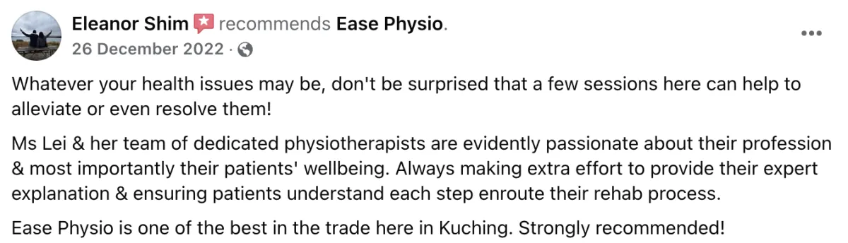 Google 五星好评|Kuching 物理治疗首选
